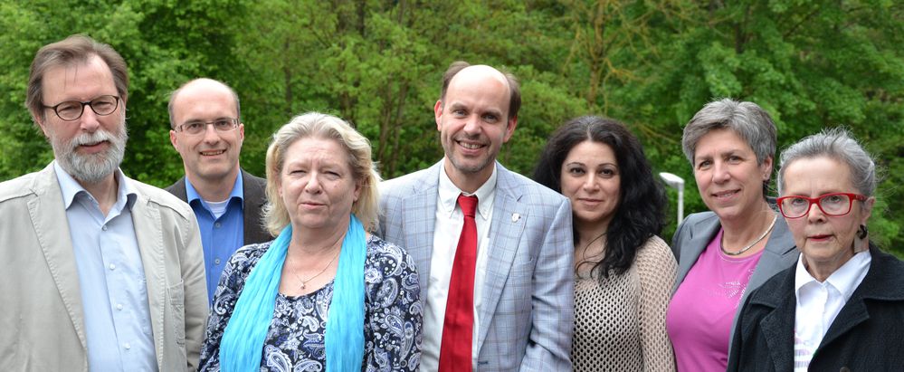 Auf dem Photo Ihre Kandidatinnen und Kandidaten der SPD (von links nach rechts): Gemeinderatsfraktionsvorsitzender Heinz Franke, Armin Dobler, Stadträtin Pia Täpsi-Kleinpeter, Kreisrat Gernot Gruber MdL und die Stadträtinnen Theodora Tiftikoglou, Siglinde Lohrmann und Ursula Hefter-Hövelborn (es fehlen Siegbert Herrmann und Frank Ehret).