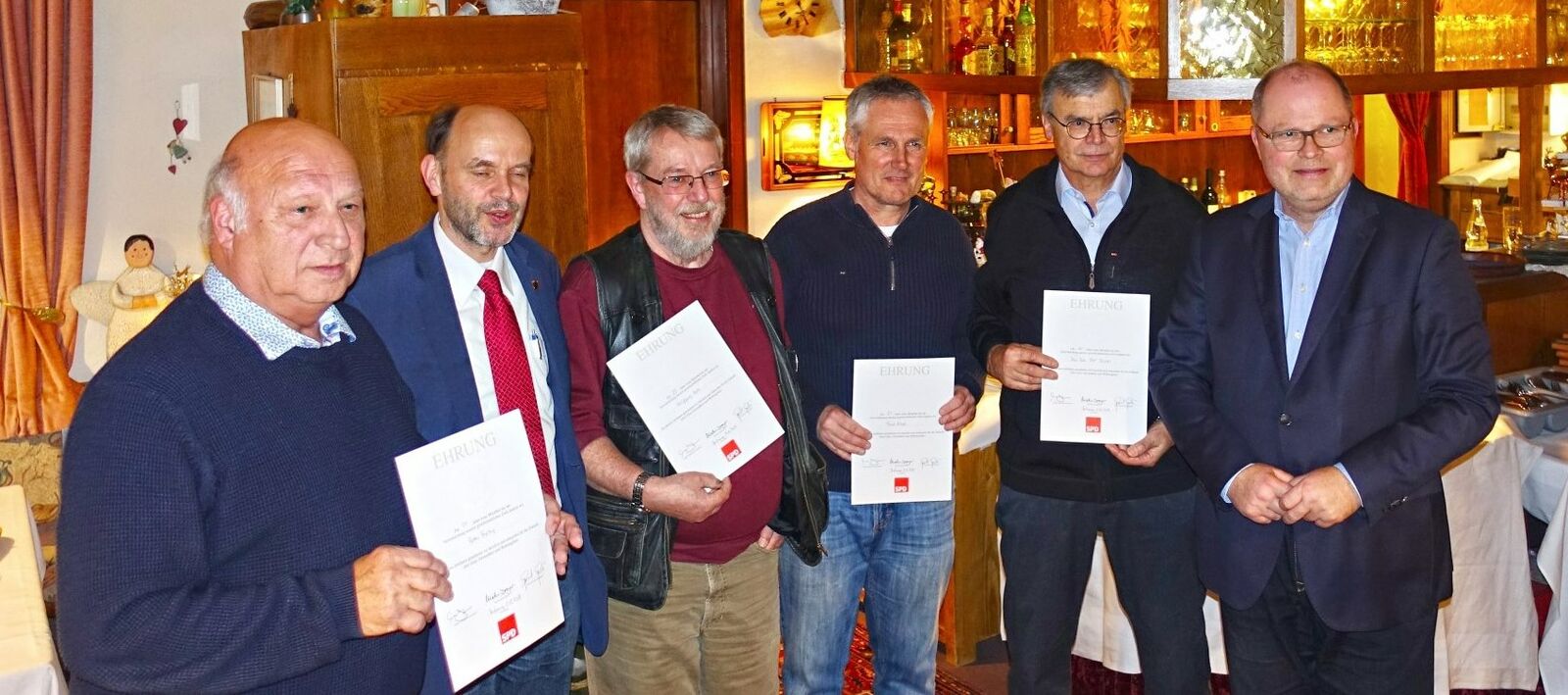 Gruber und Lange ehrten vier Sozialdemokraten für ihre langjährige Mitgliedschaft in der ältesten demokratischen Partei Deutschlands.