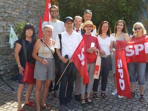 Samstag, 20.Juli 2019: Engagierte Frauen und Männer der Sozialdemokratie bei der heutigen Kundgebung für die wichtige Aufgabe Klimaschutz - Stadtrat Armin Dobler und Landtagsabgeordneter Gernot Gruber mussten um 11Uhr abbiegen zum Blaulicht-Ehrenamtstag der Stadt.
