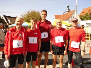 Backnanger Sozialdemokraten haben den Stäffeleslauf der Lebenshilfe unterstützt mit Spenden und etlichen Laufrunden - von links nach rechts: Landtagsabgeorndeter Gernot Gruber, Maksim Benenson (Jugendvertreter der Stadt), Timo Keil, Stadtrat Armin Dobler und Dauerläufer Joachim Rösen - Stadträtin Pia Täpsi-Kleinpeter, Waltraut Fahrner, Margit Oven und Susanne Fleig haben sich mit dem Anfeuern begnügt.